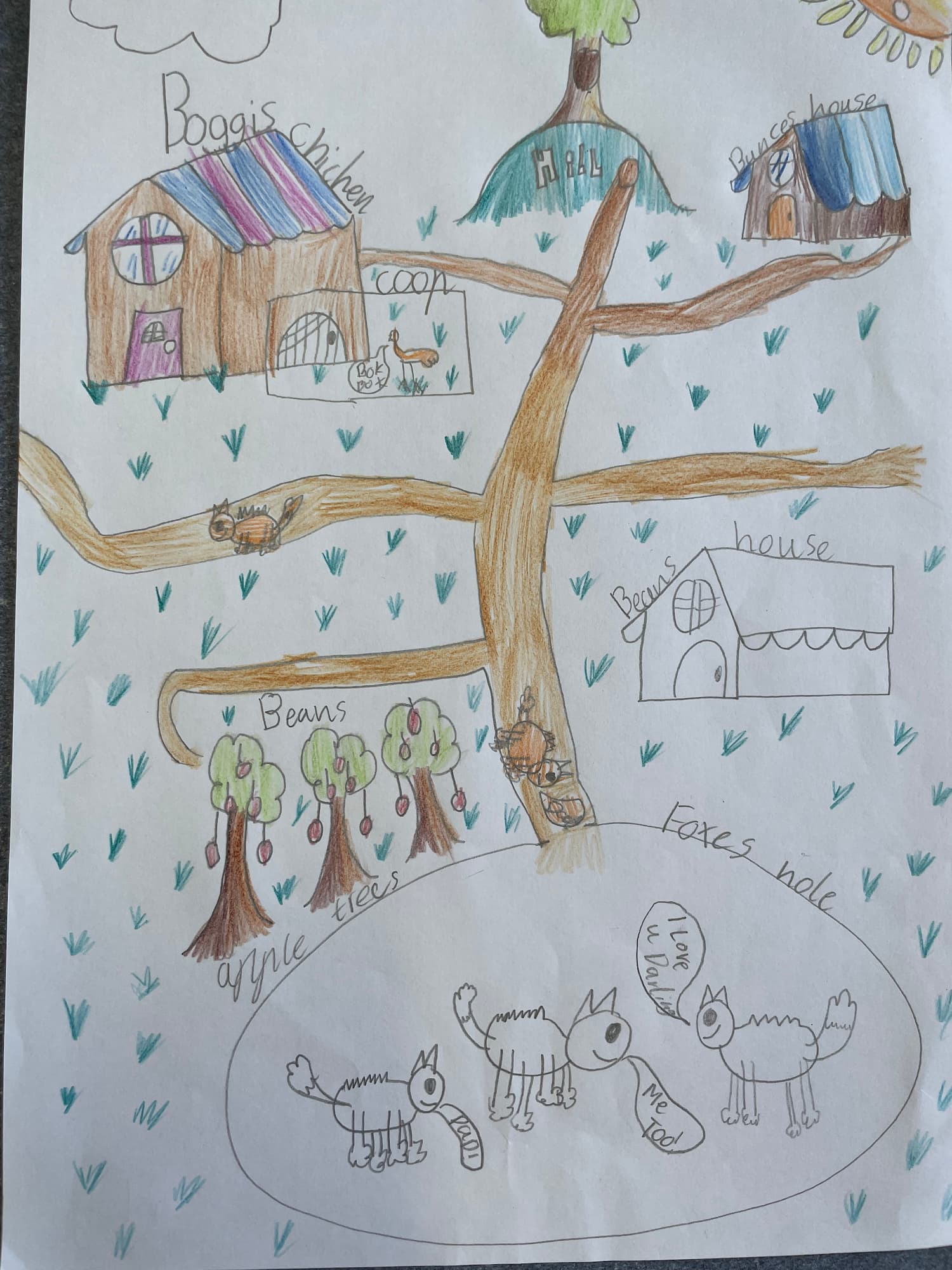 Year 3 students practised visualising while reading Fantastic Mr Fox by Roald Dahl. Students used descriptive clues from the text, they imagined the setting in their minds and created drawings to show what they pictured while reading.