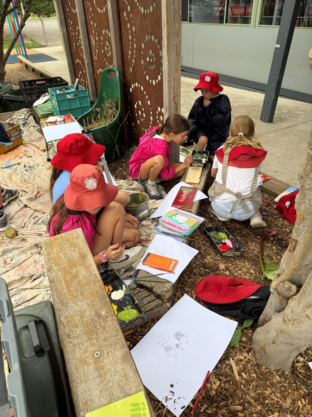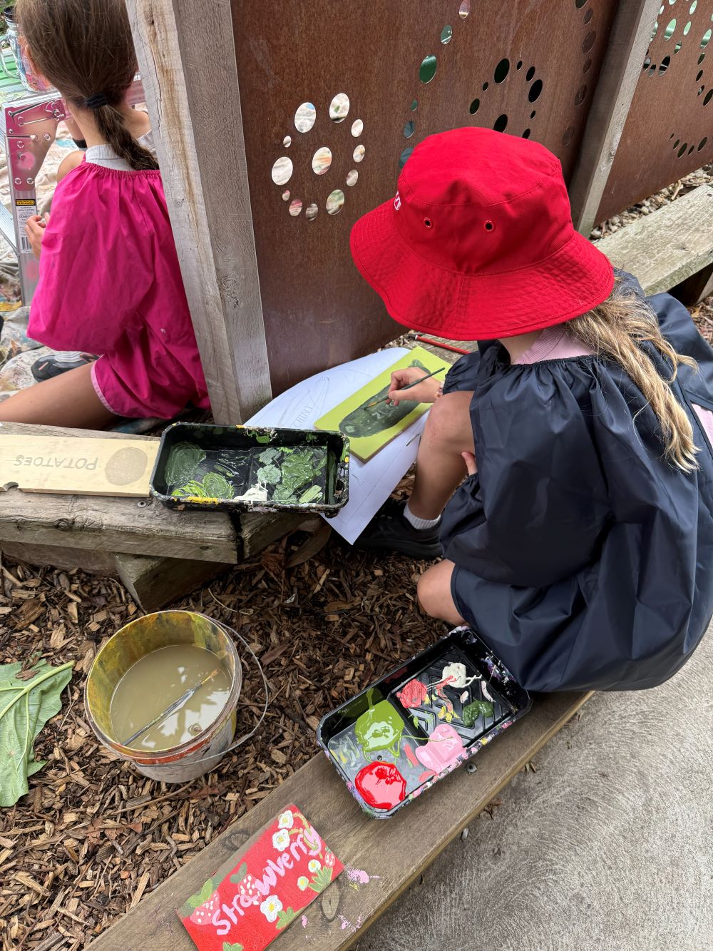 Students began by designing their signs on paper before painting their designs onto recycled pieces of timber. It was wonderful to see their creativity come to life while also using sustainable materials.