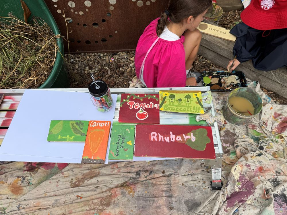 This week in Year 4, some lucky students were chosen to give our school vegetable garden a splash of colour. The students created new signposts for the herbs and vegetables growing in the garden, making it easier to find the ingredients we need when cooking in the Kitchen Garden program.